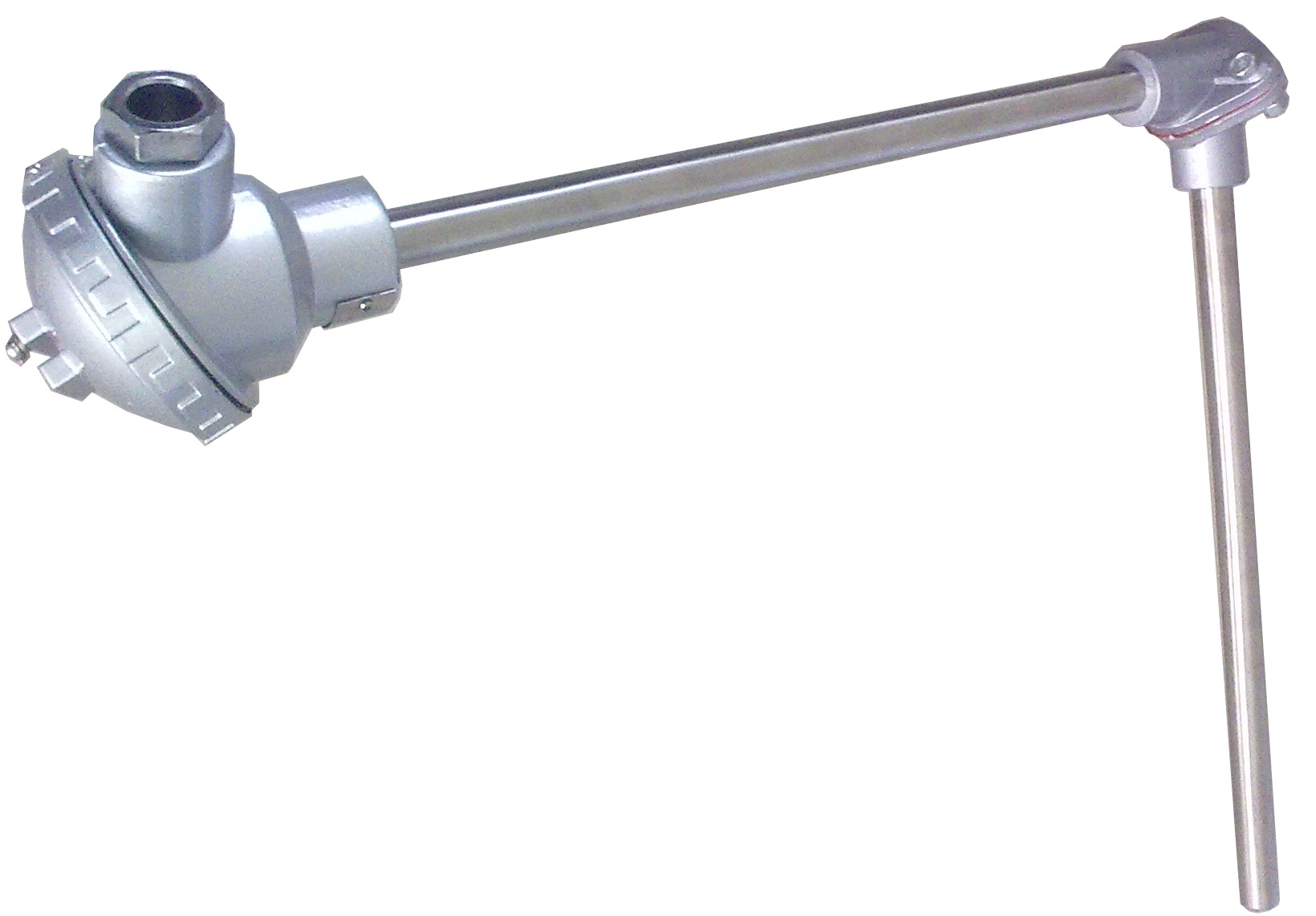 采用直角弯头结构形式,使测量装置垂直安装时,避免生产现场释放的有害气体和蒸汽,对热电偶接线盒中的接线端子等腐蚀和短路的危险。